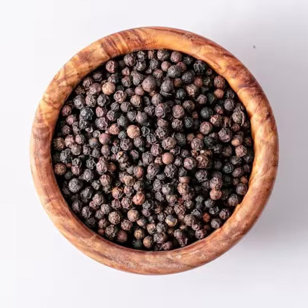 Svart peppar är säkert den mest kända av de många pepparsorterna. De gröna, omogna bären plockas och torkas genom jäsning i solen tills de blir svarta. På så sätt utvecklas smaken och den karakteristiska hetstan. Den är oersättlig i vår dagliga matlagning och passar utmärkt till att förfina grönsaker, soppor, såser, marinader, sallader, kortstekta och grillade rätter, gulasch och degvaror.